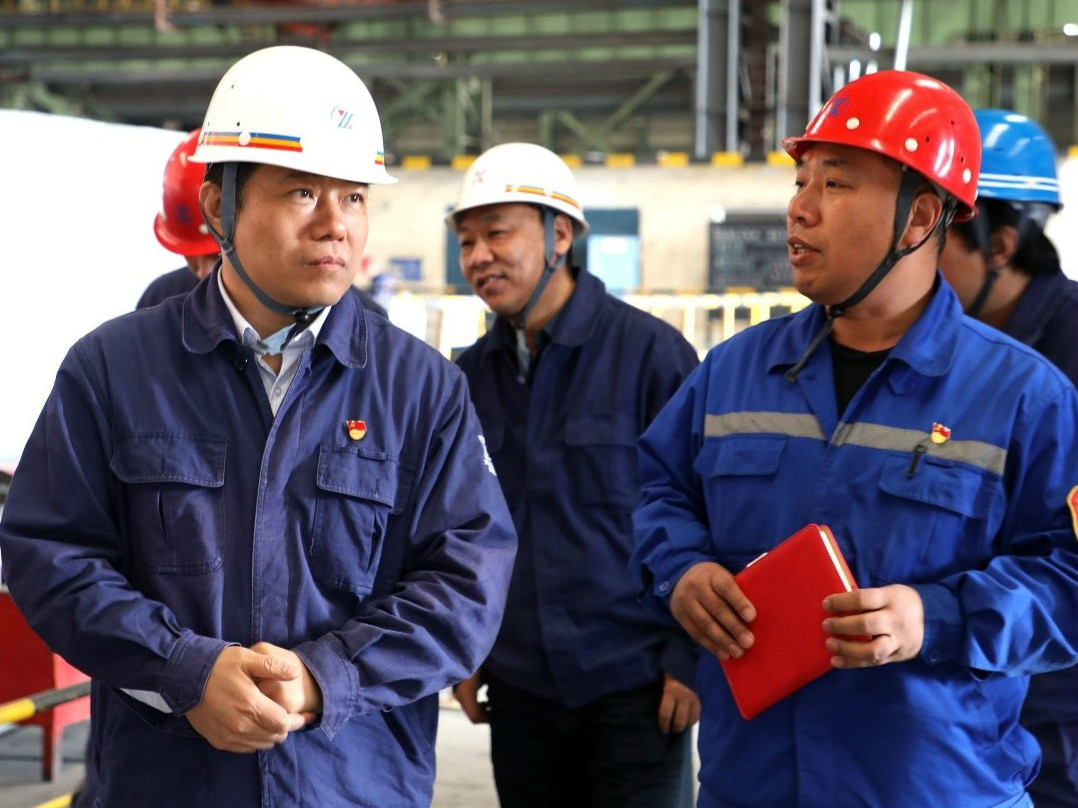 隨后,王昌輝深入煉鋼黨總支生產現場調研,走進車間班組慰問職工,了解主題教育在基層一線開展情況,調研中也聽取了煉鋼黨總支關于主題教育及生產經營情況匯報,并與現場人員進行了細致交談。